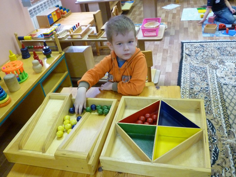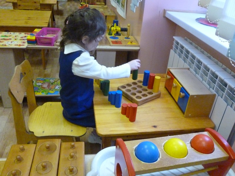 Цель: подготовить ребенка к переходу на новый абстрактный уровень развития мышления, речи и математических представлений; способствовать развитию всех органов чувств: зрительного, слухового восприятия, тактильных, тепловых, вкусовых, стереогностичечских (определение наощупь), барических (чувство тяжести) ощущений, системы представлений о качествах окружающих предметов, их разнообразии; развить умение сравнивать, анализировать, выявлять закономерности; подготовить к изучению математики, биологии, географии, других направлений; обеспечить развитие мелкой и крупной моторики;